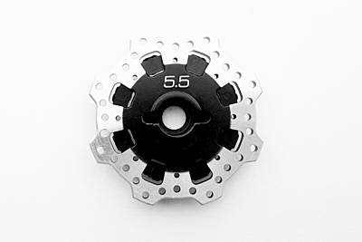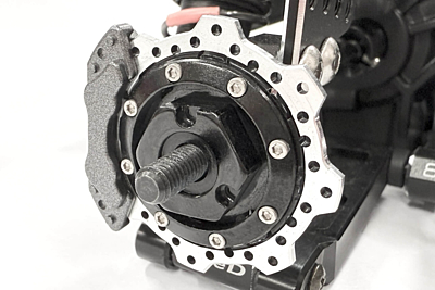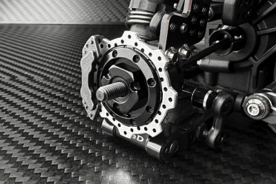 Introducing the new wave shaped Type R Aluminum brake disk front axle and rear wheel hub like a real car racing machine spec.