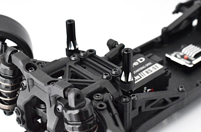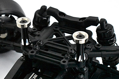 An aluminum front body post ideal for users who want to fix the body with magnets. By attaching it to the body mount base used at the base of the RDX bumper and mounting it on the upper bulkhead mount, the heavy magnet can be installed in the center of the chassis instead of at the edge of the chassis, it will also contribute for weight reduction at front section. The bottom part of the lightweight aluminum post is SE (shiny edge) processed to create a luxurious appearance.